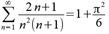 1,50000000000 1,91666666667 2,11111111111 2,22361111111 2,29694444444 2,34853174603 2,38679705215 2,41631094104 2,43976773117 2,45885864026 2,62508291009 2,64293556568 2,64473408185 2,64491406700 2,64493206685 2,64493386685 2,64493404882 2,64493406685 |