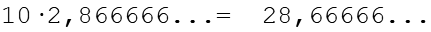 Wir multipßlizieren die Zahl so lange mit 10 bis die Periode das Komma erreicht, bei diesem Beispiel reicht einmal 10.