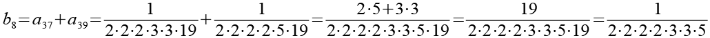 Um das Addieren der Brüche zu vereinfachen habe ich von den 48 Nennern die Primfaktorzerlegung berechnet.