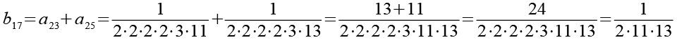 Im zweiten Schritt werden die 24 Brüche (b1 bis b24) wieder paarweise addiert.