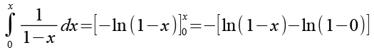 Jetzt integrieren wir beide Seiten von Gl. 11 mit den Integrationsgrenzen 0 und x.