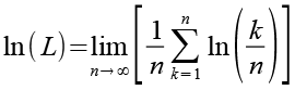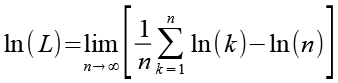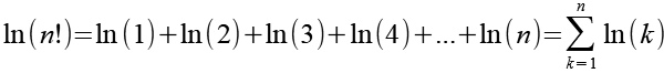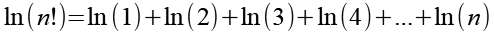 Für ln(n!) können wir mit Hilfe von Gl. 10 und Gl. 11 auch schreiben.