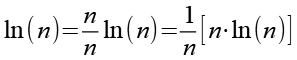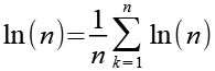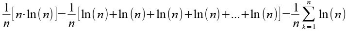 Jetzt wäre es sinnvoll auch ln(n) durch eine Summenfunktion auszudrücken, dazu multiplizieren wir ln(n) mit n/n.