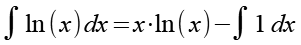 Mit Hilfe von Gl. 45 erhalten wir das Ergebnis für das Integral von ln(x).