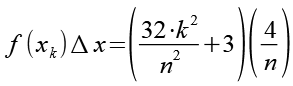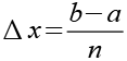 Die Formel für die Riemann Summen entwickeln wir Schrittweise, wir fangen mit Delta x an und setzen Gl. 5 und Gl. 6 in Gl. 3 ein.