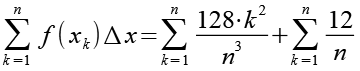 Jetzt haben wir alle Teile der Riemann Summe berechnet und können sie zusammenfügen.