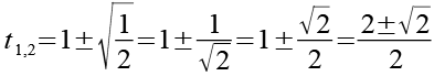 Wir erhalten die beeiden Lösungen t1 und t2.