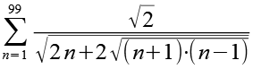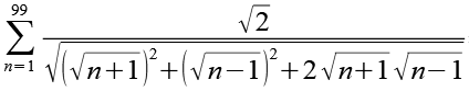1,00000000000 1,51763809021 1,93185165258 2,28824561127 2,60608285647 2,89577271977 3,16372191220 3,41421356237 3,65028153987 3,87416907622 4,08759084151 4,29189271839 4,48815428667 4,67725731740 4,85993313109 5,03679629098 5,20836916624 5,37510022030 5,53737788047 5,69554122819 5,84988835837 6,00068300073 6,14815982551 6,29252873988 6,43397840021 6,57267910845 6,70878521976 6,84243715852 6,97376311795 7,10288050203 7,22989715582 7,35491242113 7,47801804675 7,59929897710 7,71883403860 7,83669653945 7,95295479588 8,06767259552 8,18090960698 8,29272174288 8,40316148284 8,51227816152 8,62011822638 8,72672546889 8,83214123238 8,93640459954 9,03955256180 9,14162017269 9,24264068712 9,34264568799 9,44166520159 9,53972780290 9,63686071201 9,73308988237 9,82844008179 9,92293496696 10,0165971520 10,1094482715 10,2015090395 10,2927993025 10,3833380902 10,4731436618 10,5622335485 10,6506245938 10,7383329908 10,8253743167 10,9117635651 10,9975151759 11,0826430641 11,1671606458 11,2510808627 11,3344162056 11,4171787359 11,4993801061 11,5810315787 11,6621440448 11,7427280402 11,8227937622 11,9023510841 11,9814095698 12,0599784869 12,1380668196 12,2156832806 12,2928363224 12,3695341483 12,4457847223 12,5215957787 12,5969748316 12,6719291834 12,7464659329 12,8205919836 12,8943140504 12,9676386677 13,0405721953 13,1131208251 13,1852905877 13,2570873574 13,3285168585 13,3995846704 |