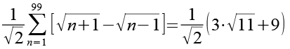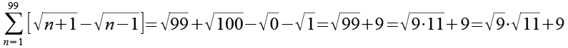Wir können Gl. 1 und Gl. 22 gleichsetzen, die Summenfunktion lassen wir weg. Wir erhalten eine "hübsche" Gleichung deren Richtigkeit leicht zu beweisen ist (auch wenn es eigentlich überflüssig ist).