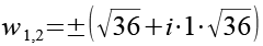 Für die beiden Wurzeln erhalten wir.