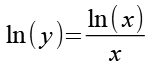 Auf beide Seiten von Gl. 2 wenden wir den natürlichen Logarithmus an.