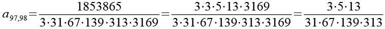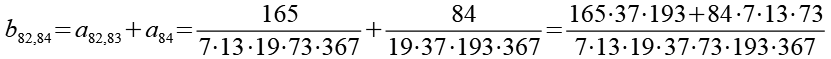 Übersprungen habe ich a5, a14, a23, a26, a37, a40, a47, a56, a61, a68, a77 und a84. Sie wurden im zweiten Schritt berücksichtigt. Die 100 Brüche habe ich auf 56 Brüche reduziert.