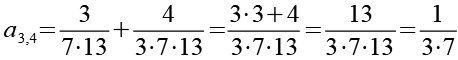 In Schritt 3 habe ich alle Brüche aus Schritt 2 addiert. Die 28 Brüche aus Schritt 2 wurden so auf 13 Brüche reduziert.