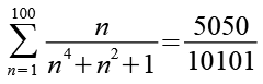 Man könnte natürlich auch die 100 Brüche manuell addieren, von den Zahlen habe ich zuerst die Primfaktorzerlegung berechnet.