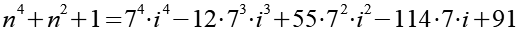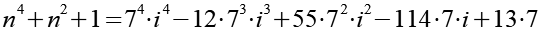 Wenn Gl. 34 korrekt ist dann müsste es möglich sein bei der Berechnung von n4+n2+1 die 7 auszuklammern, unabhängig von i.