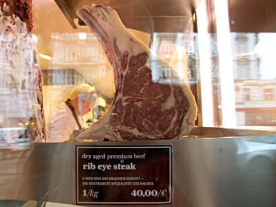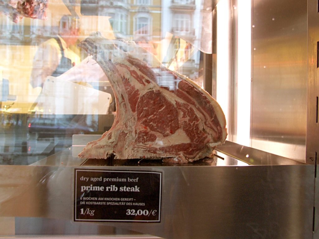 Von Außen kann man einem Blick in die Reifekammer mit den verschiedenen Cuts werfen.