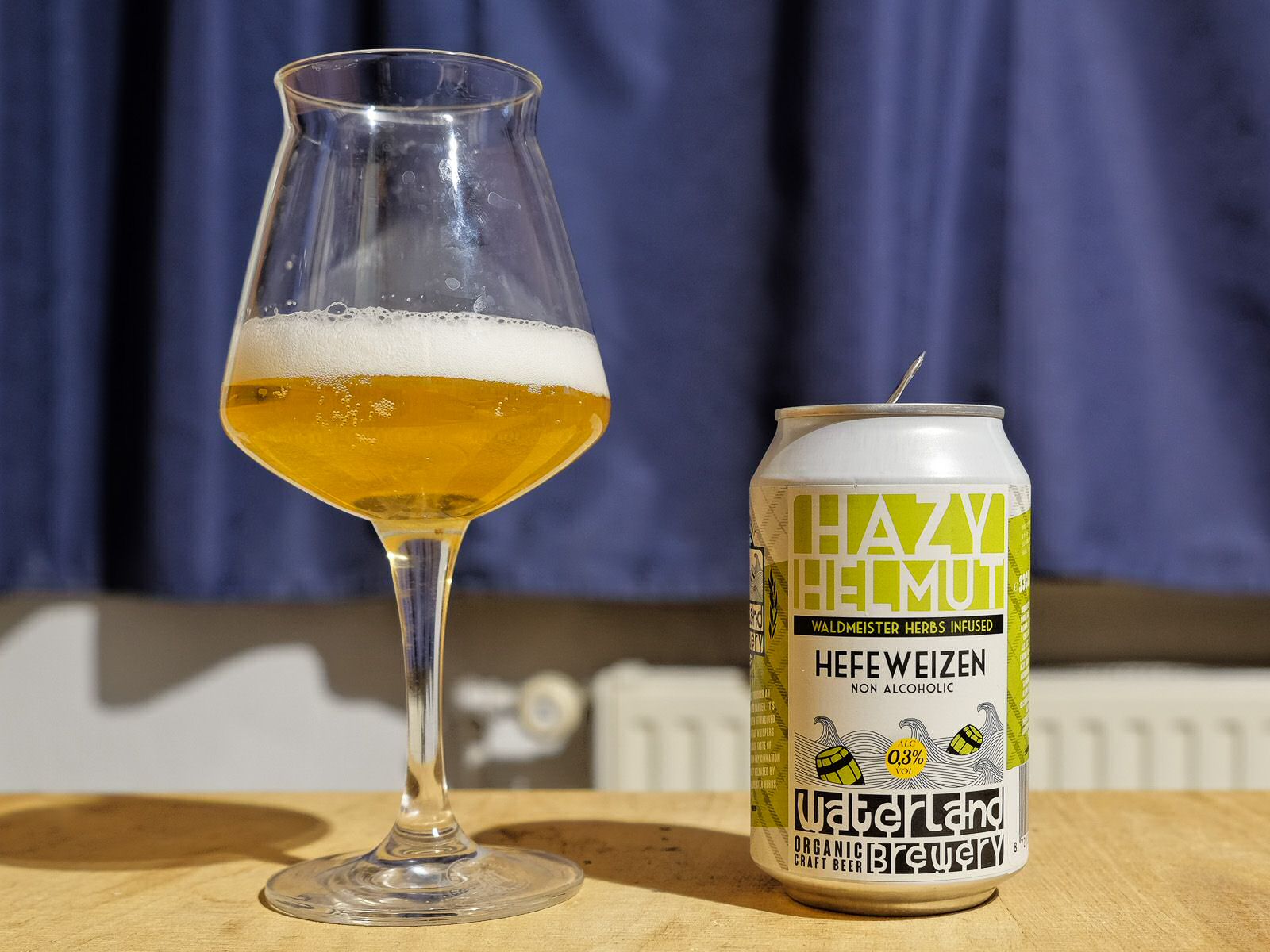 A Non Alcoholic Hefeweizen is a walk through a magical herb garden of scent and taste. It is Hefeweizen reinvented, a delicate taste of freshly mown hay, cinnamon, chamomile flower, coriander and sweet honey, released by the Waldmeister herbs. (Zitat Waterland Brewery)