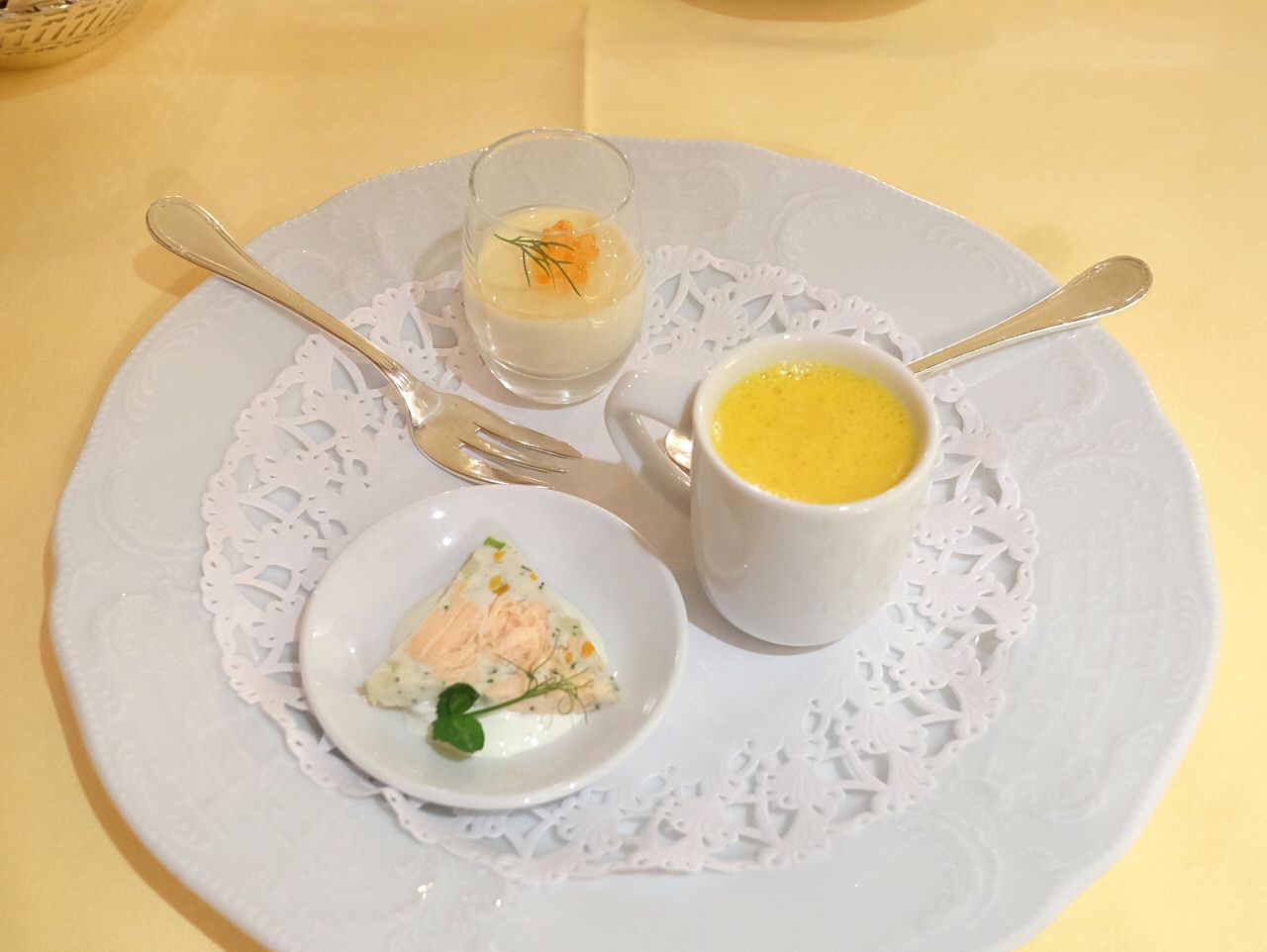 Das 5 Gänge Menü kostet 80 €. Der warme Schokoladenkuchen klang verlockend und ich habe ihn als 6. Gang zusätzlich bestellt. Mit Gänseleber, Kabeljau und Reh bot sich ein direkter Vergleich zu dem Menü im Saphir dass ich gestern hatte, auch wenn sich verschiedene Küchenstile nur schwer vergleichen lassen.