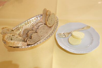 Vor dem Menü wurden verschiedene Brote (unter anderem mit Oliven) und gesalzene und ungesalzene Butter. Sehr lecker.