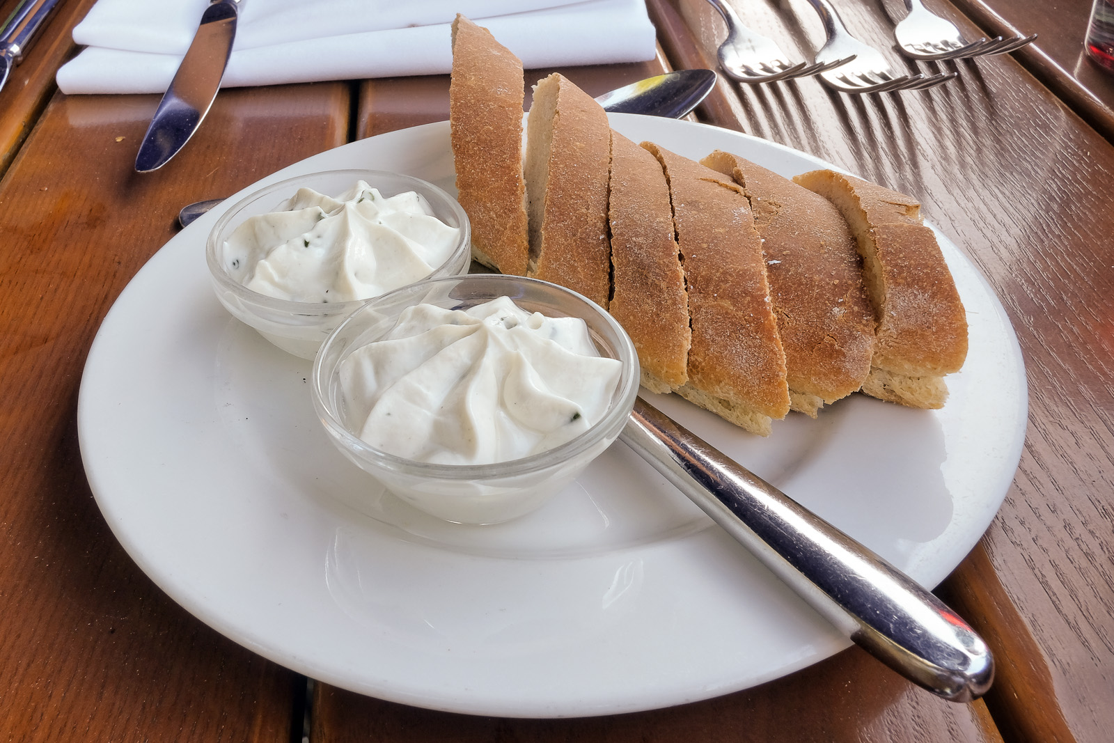 Vor dem Menü wurde etwas Baguette mit Schnittlauch-Quark gereicht, sehr lecker.