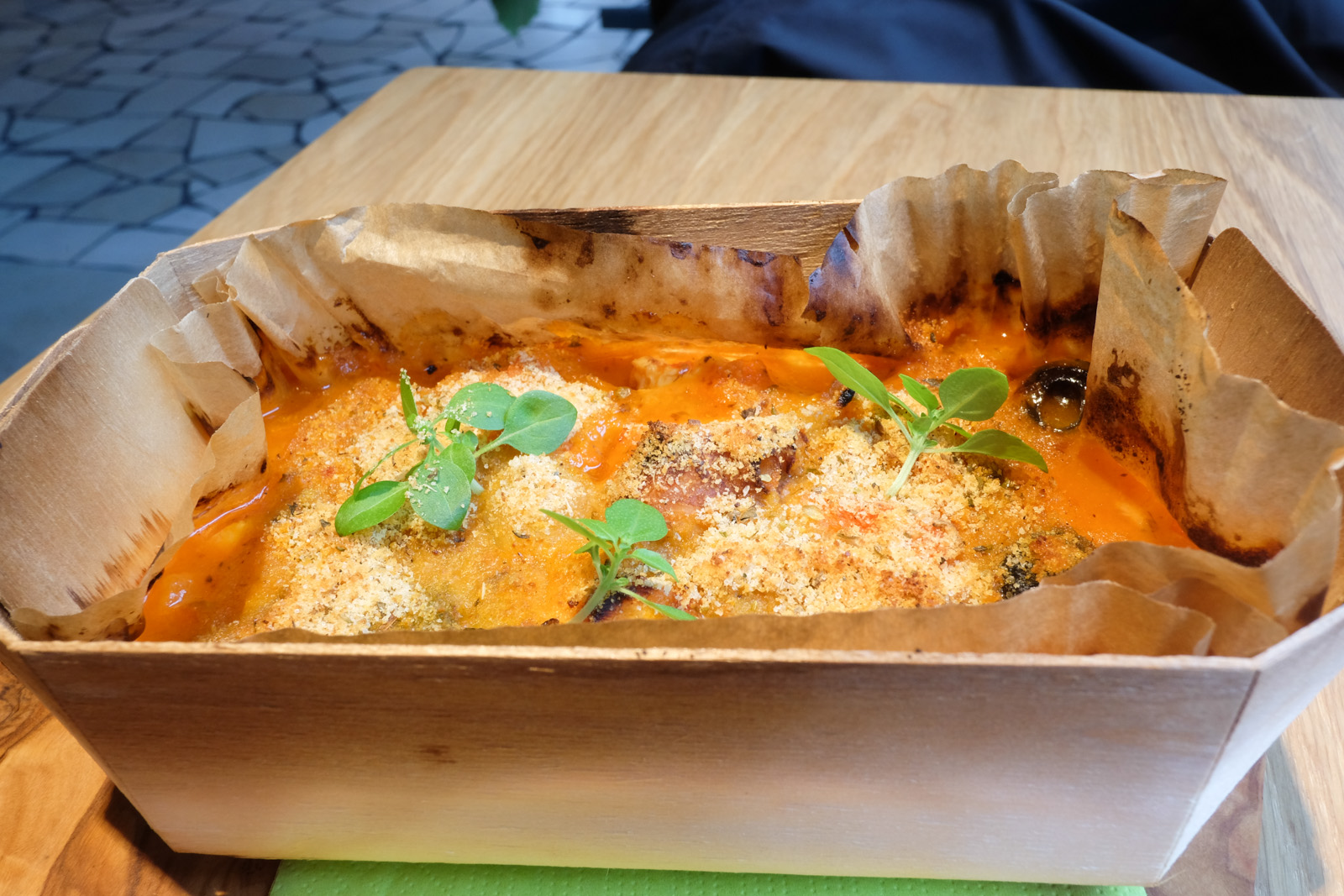 und hatte ein feines Aroma. Gegart war er mit gelben, roten und grünen