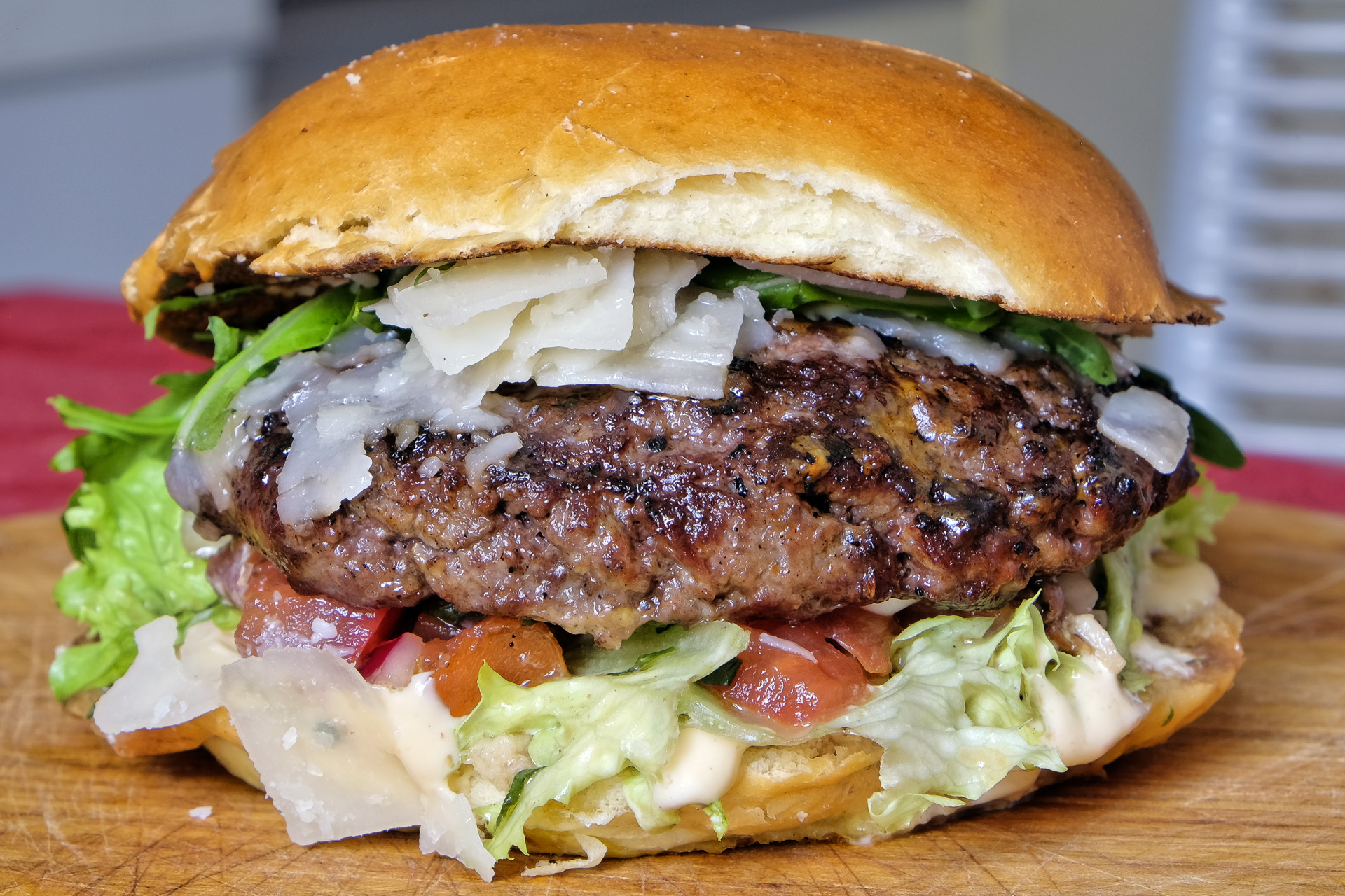 Frischer Rucola, Bruschetta Mix, Mozzarella, Grana Padano Flocken, Dulf‘s Burger Mayo