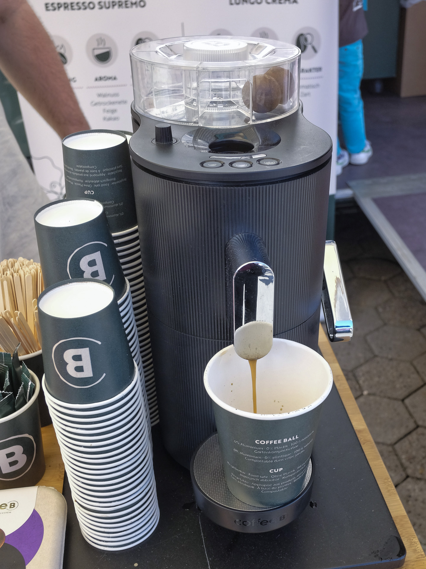 Coffee B hatte einen Stand auf dem Hamburger Hafengeburtstag und bot die Gelegenheit das System kennenzulernen und eine Kaffee zu probieren.