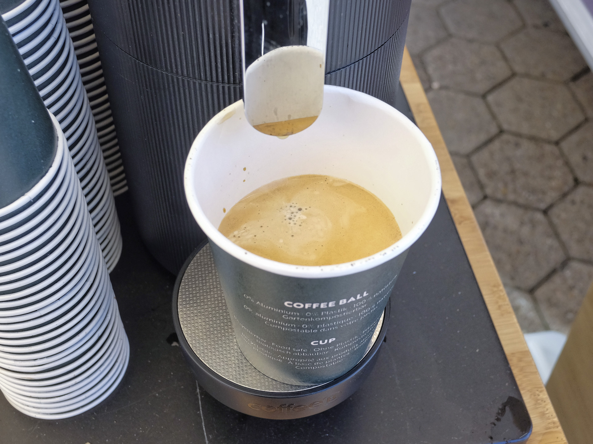 Ein Coffee Ball nach dem Brühvorgang, er ist kompostierbar.