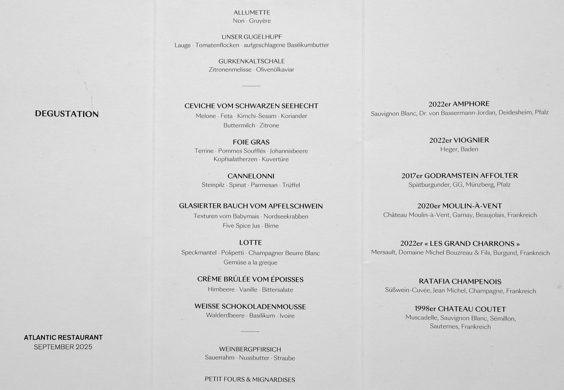 Der Service war sehr freundlich und zuvorkommend, das Atlantic Restaurant bietet eine sehr gute Qualität. Chef de Cuisine ist Fokke Mick.