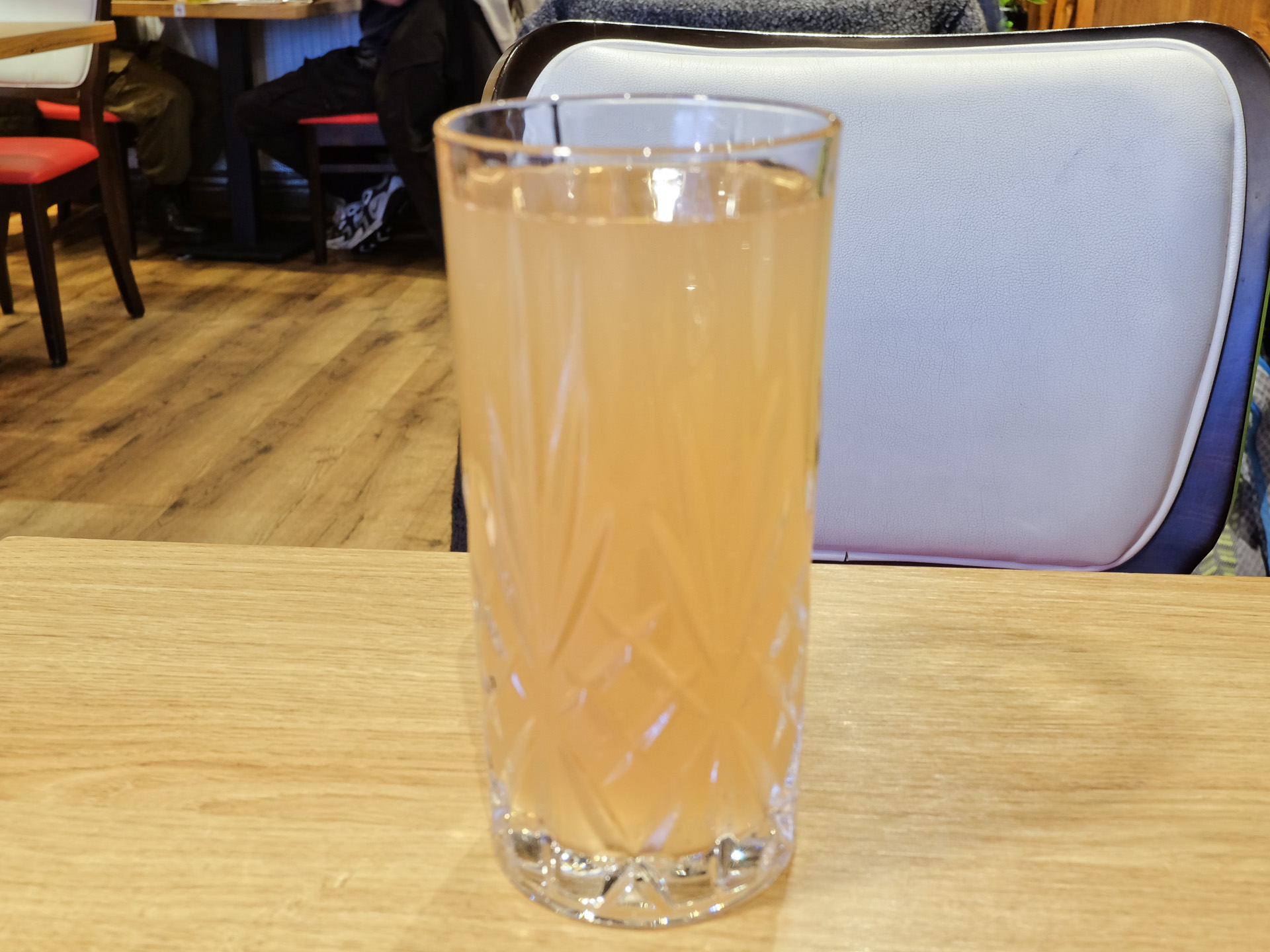 Die Rhabarber Schorle hatte ein feines Rhabarber Aroma, sehr lecker.