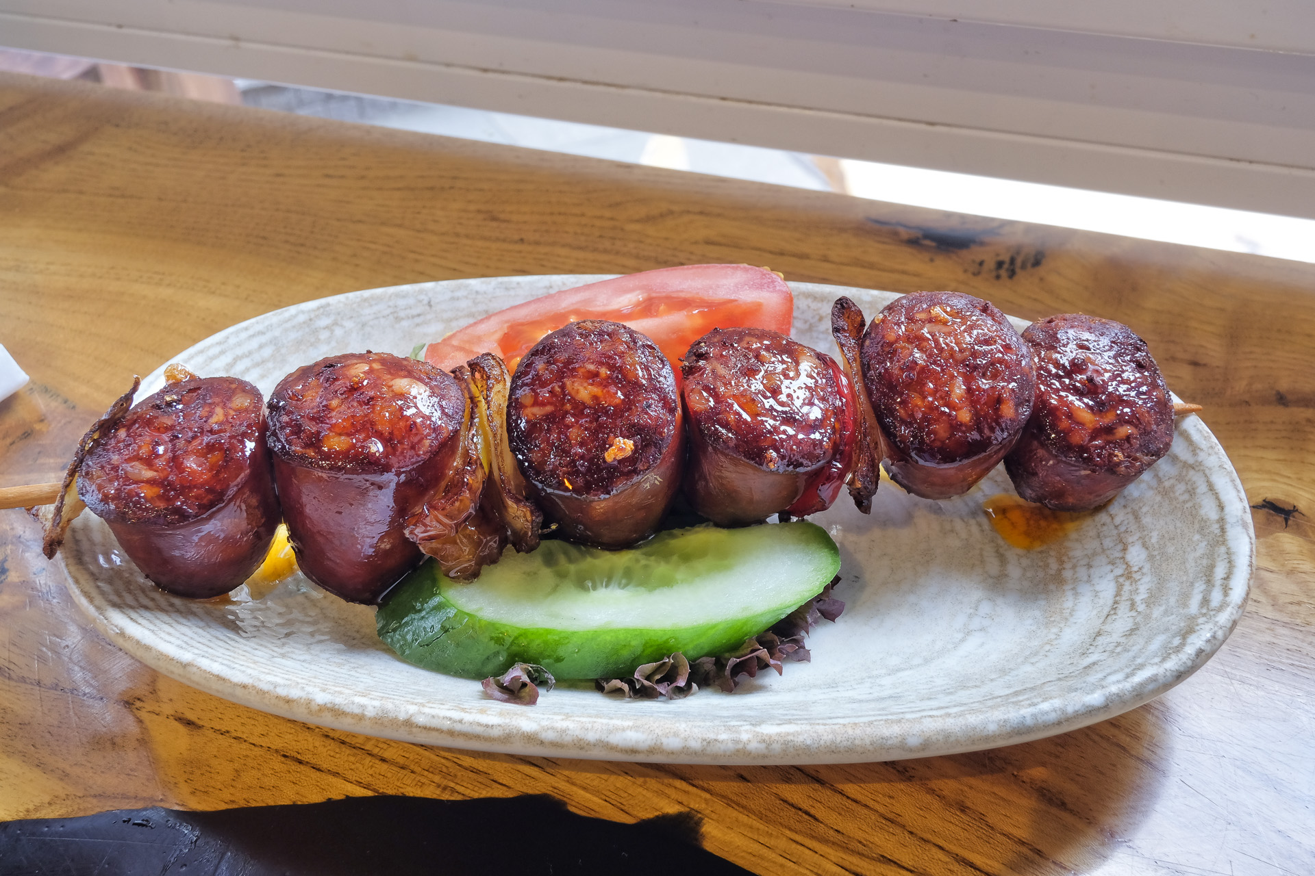 Gegrillter Chorizospieß (spanische Paprikawurst)