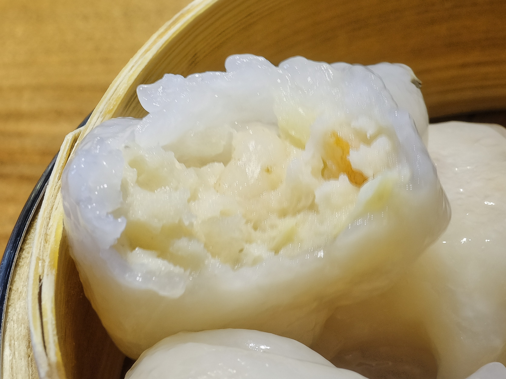 Die Har Gow hatten eine dicke, sehr klebrige Hülle aus Klebreis (?), gefüllt waren sie mit Garnelen und Gemüse. Die Garnelen hätten etwas knackiger sein können. Gerade noch sehr lecker.