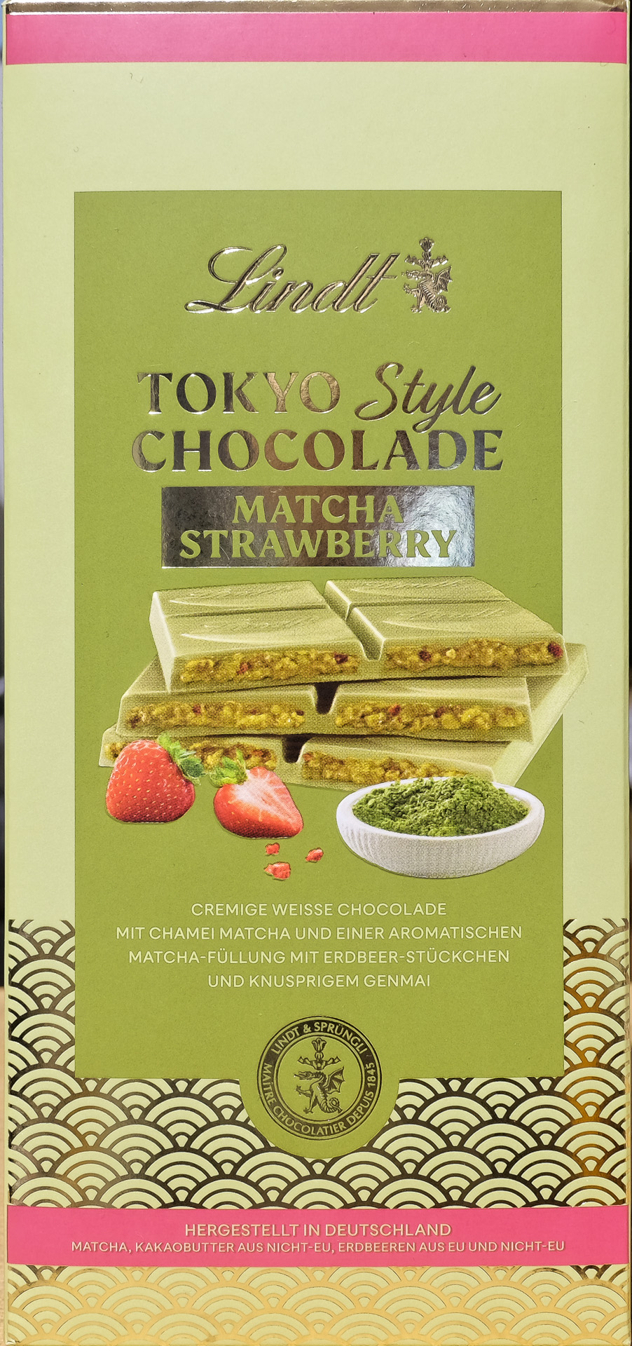 neueste Kreation: Lindt Tokyo Style Chocolade Matcha Strawberry. Für den exklusiven Charakter der Rezeptur haben die Lindt Maîtres