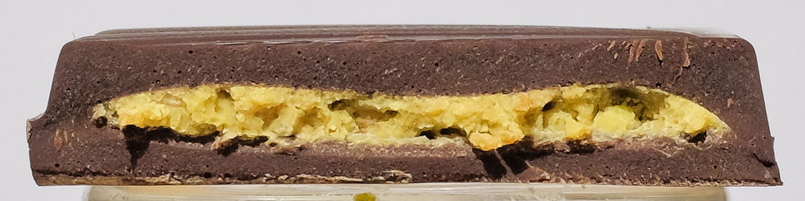 Die Schokolade hatte einen zarten Schmelz und ein feines Aroma. Gefüllt war sie mit schön lockerer Zuckerwatte (Pismaniye) und einer Pistaziencreme. Die Zuckerwatte hatte eine interessante langfaserige, nicht klebrige Textur, sie zerfiel auf der Zunge. Die Pistaziencreme hatte ein feines Aroma. Sehr lecker, Klasse. Gekauft bei Rewe.
