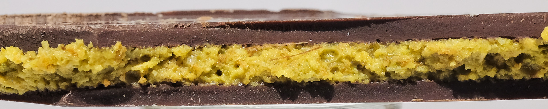 Die Schokolade hatte einen zarten Schmelz und ein feines Aroma. Der Geschmack ging eher in Richtung Nougat als in Richtung Pistazien. Die knusprigen Kadayffäden bildeten einen schönen Kontrast. Sehr lecker.