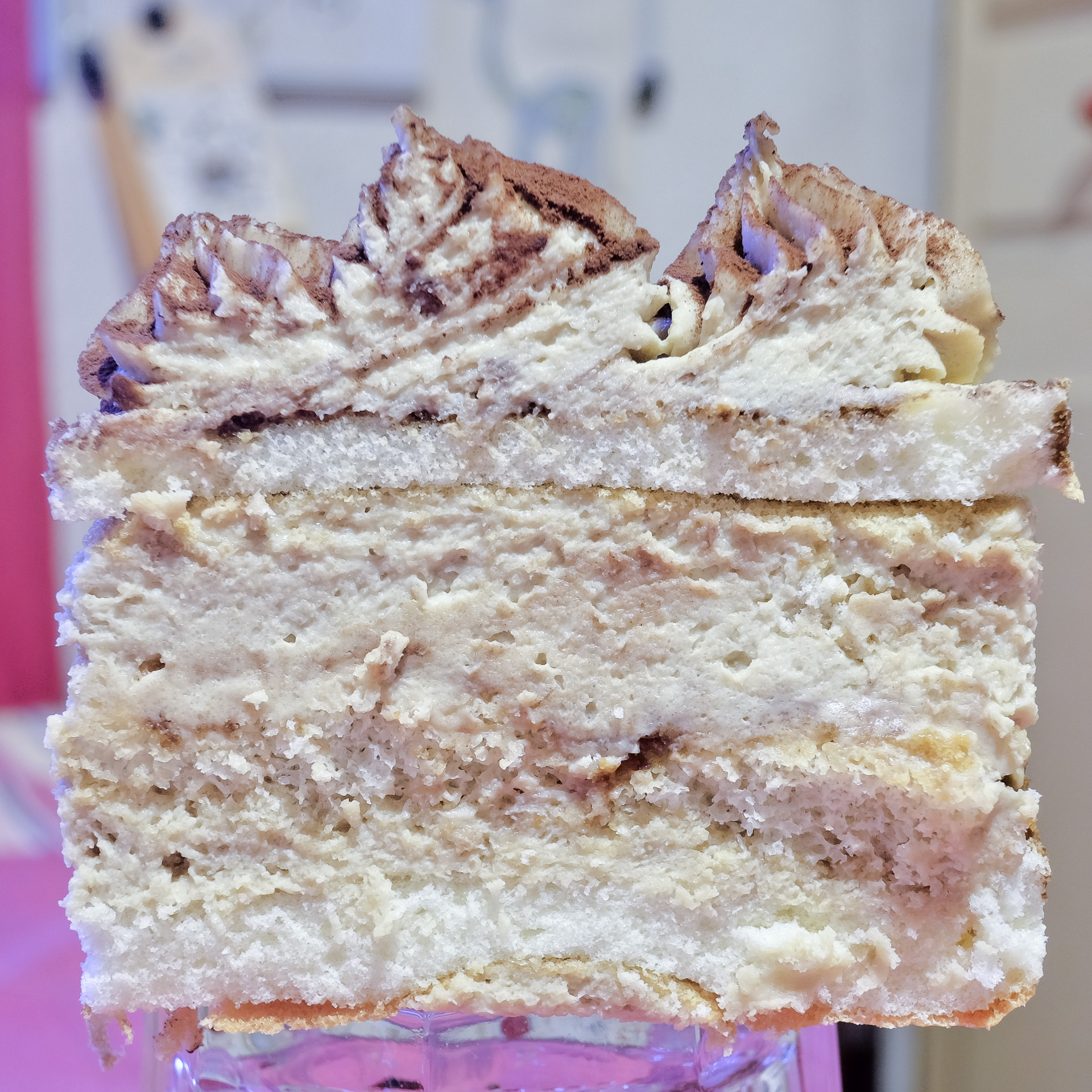 Der Biskuit war sehr feinporig, die Creme war recht fest und etwas unangenehm bitter. Für ein Tiramisu hätte es etwas saftiger sein können. Gerade noch sehr lecker.