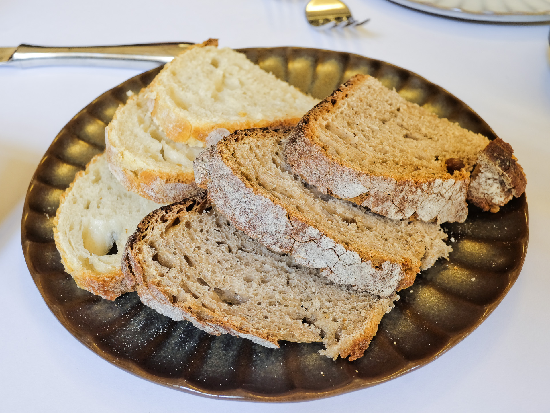Vor dem Essen wurde etwas Brot gereicht, es hatte eine rösche Kruste, eine feine Krume und ein feines Aroma. Sehr lecker.