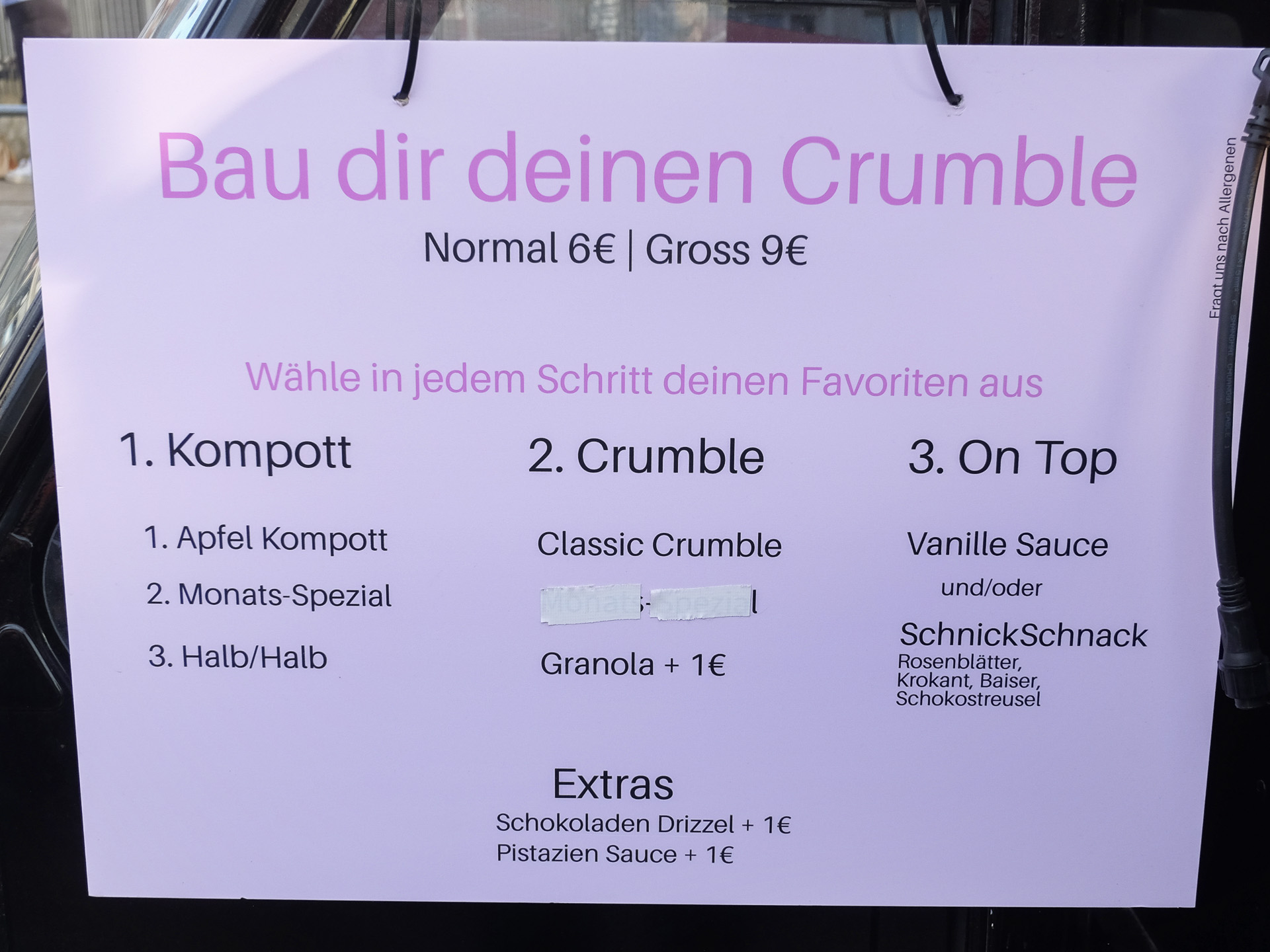 The Crumble Bar ist ein Food Truck aus Hamburg. Besucht hatte ich ihn beim Food Truck Festival auf dem Spielbudenplatz.