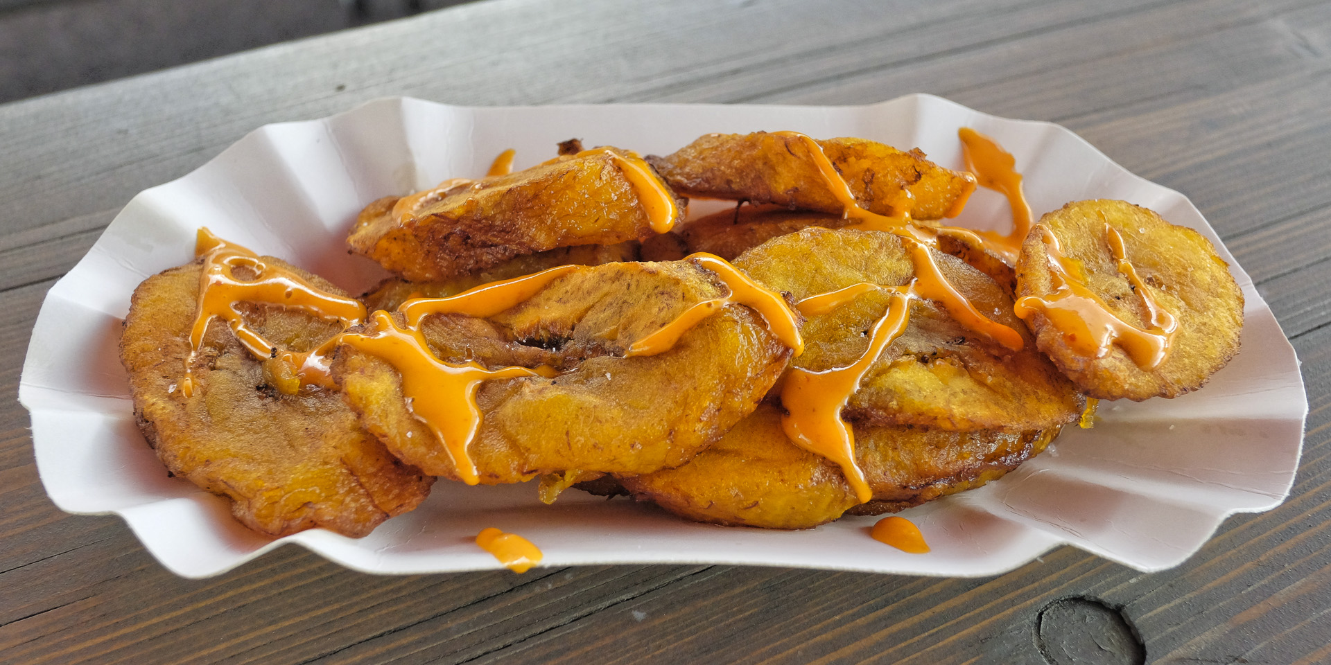 Die Kochbanane wurde in Scheiben geschnitten und frittiert, sie hatte eine zart mehlige Textur und ein feines Aroma. Sehr lecker.