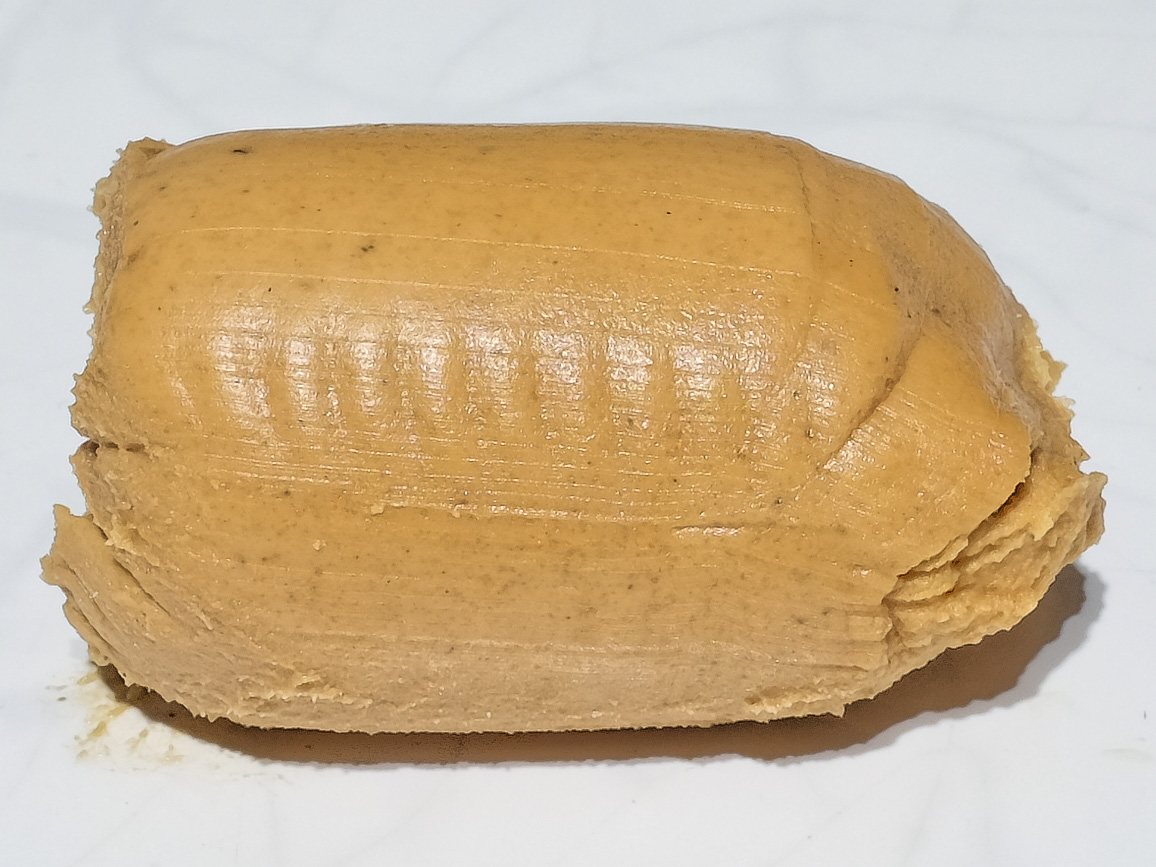 Der Geruch war angenehm, die Textur war weich und leicht mehlig, der r Geschmack war leicht würzig und leicht rauchig, er erinnerte aber kaum an eine richtige Teewurst. Ganz lecker.