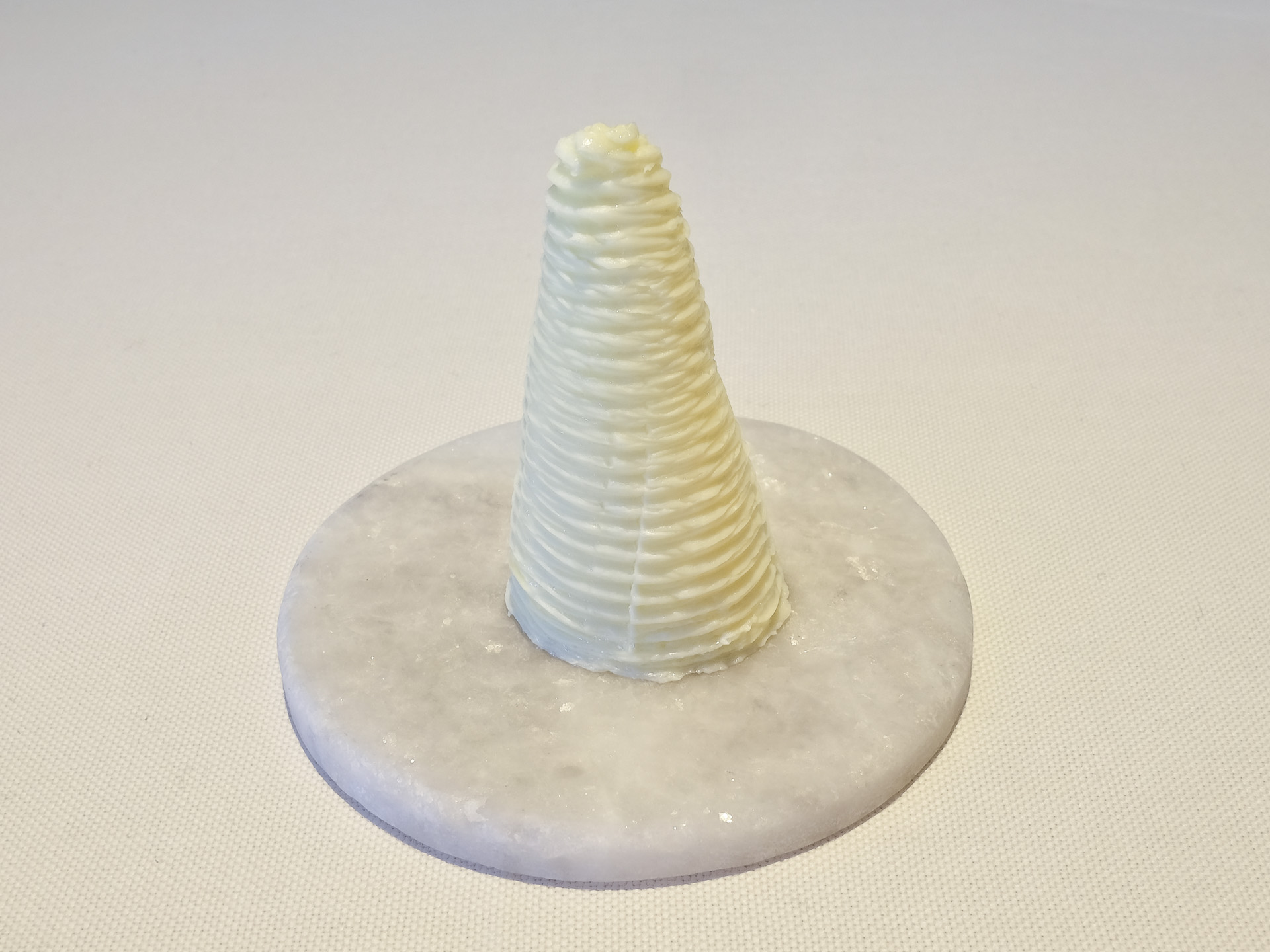 Auf einem Taler aus mit flüssigem Stickstoff geeistem Mezcal war ein Ananas Safran Sorbet angerichtet. Dazu gab es ein Basilikum Destillat das durch Jalapenos eine leichte Schärfe hatte. Ein interessantes Dessert, frisch, leicht fruchtig und leicht ätherisch. Für mich kam die Ananas nicht richtig zur Geltung, ich bin allerdings auch kein Freund von Safran.