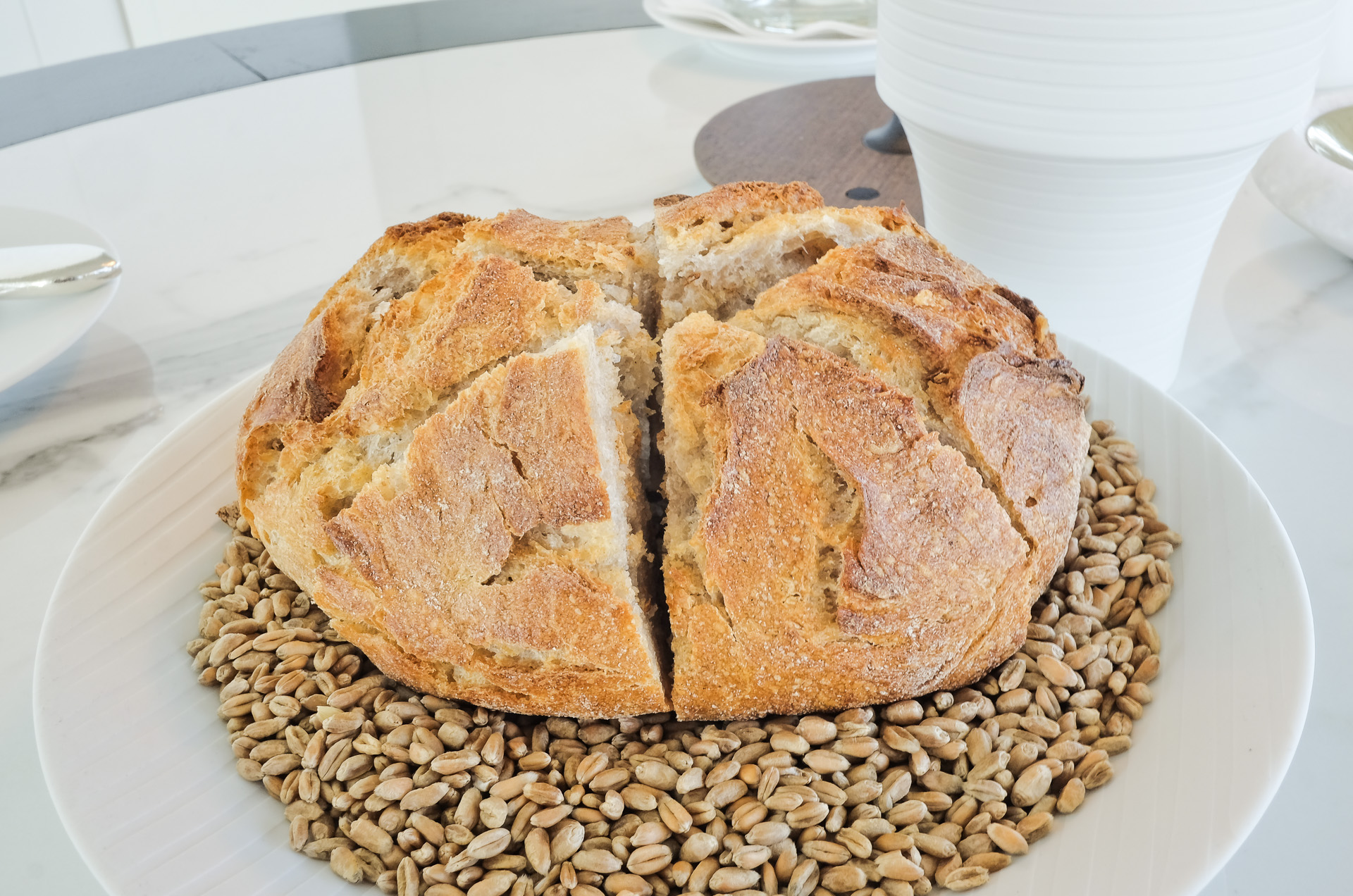 Das warme Brot hatte eine schön rösche Kruste und eine zarte lockere Krume. Sehr lecker.