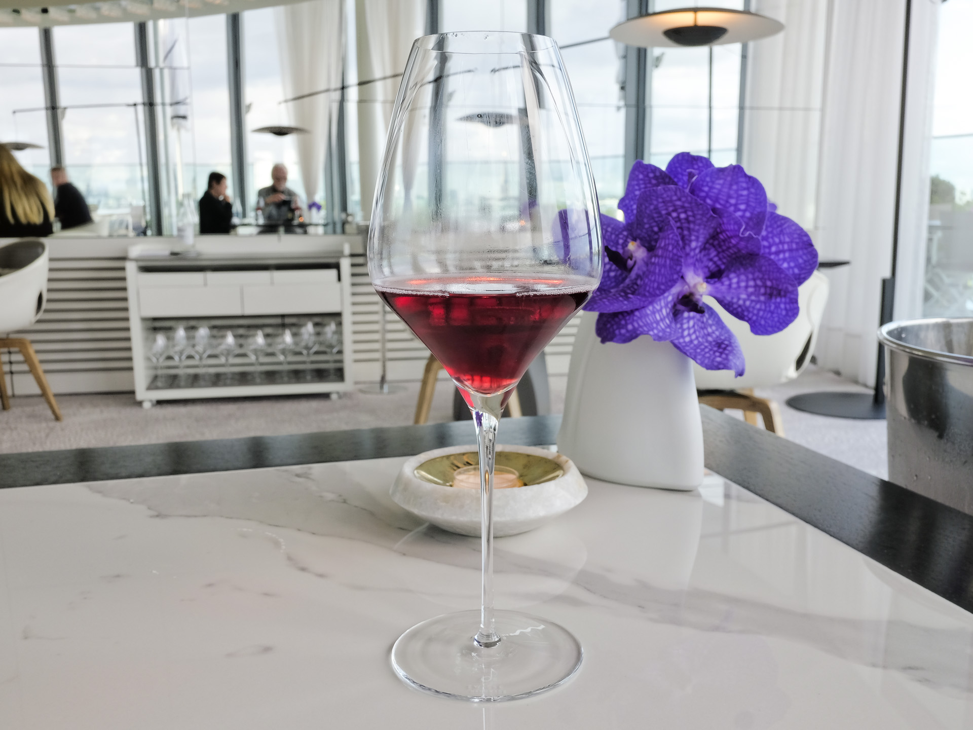 Auch nach mehr als zehn Minuten im Glas hält sich der Wein nahezu unverändert. Wenn er dann an Kohlensäure verloren hat, setzt