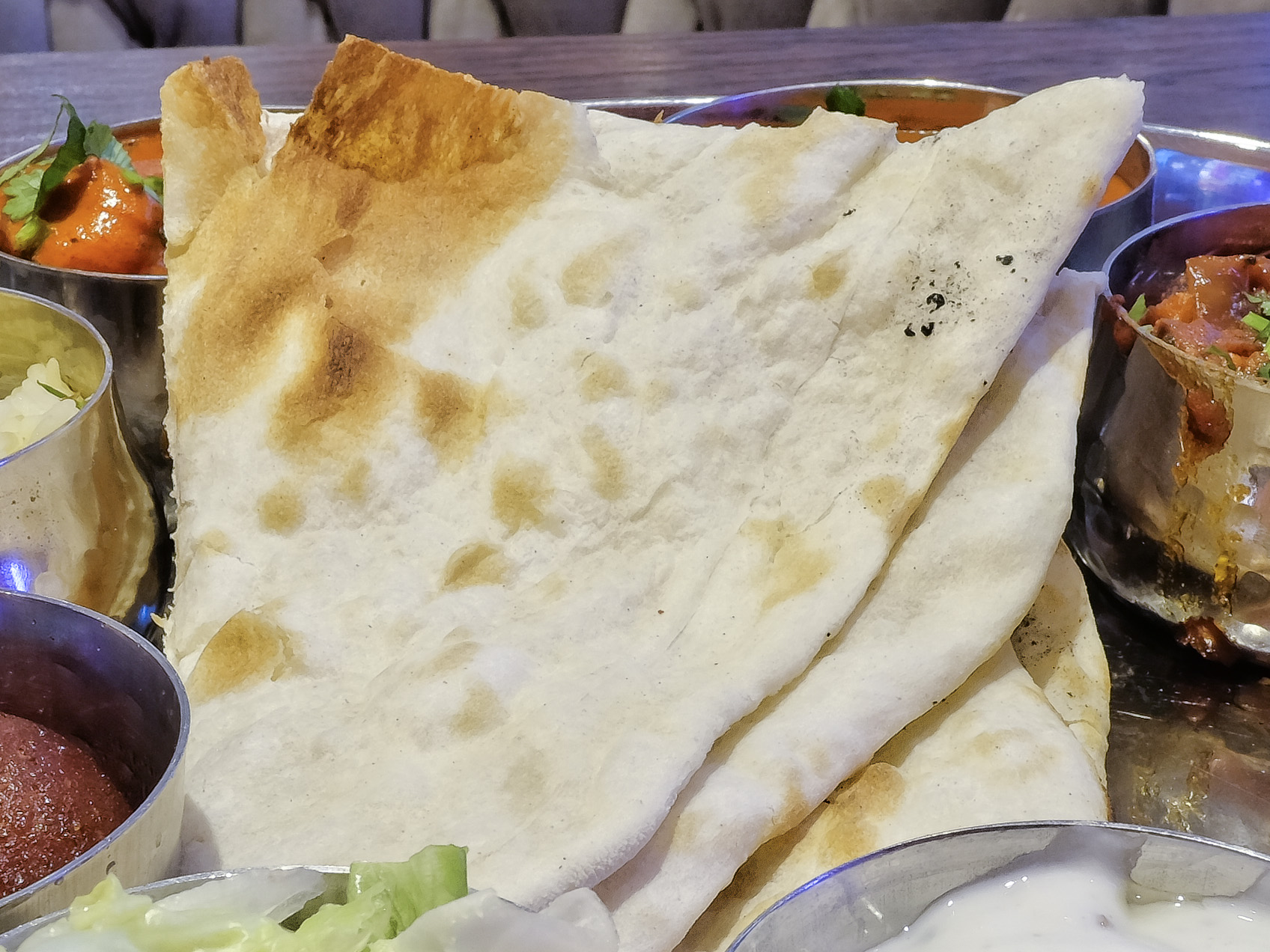 Das Naan war etwas zäh, gerade noch sehr lecker.