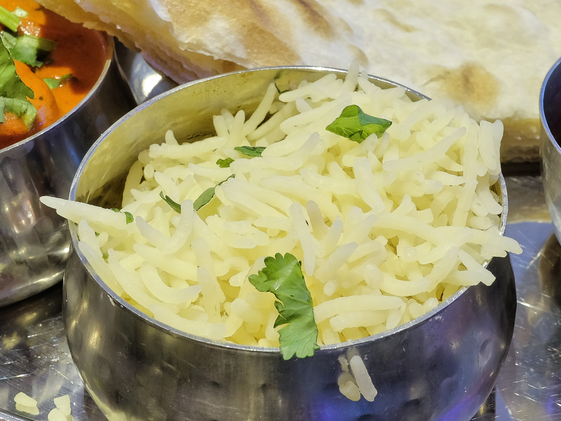 Als Beilage gab es lockeren Basmatireis, sehr lecker.