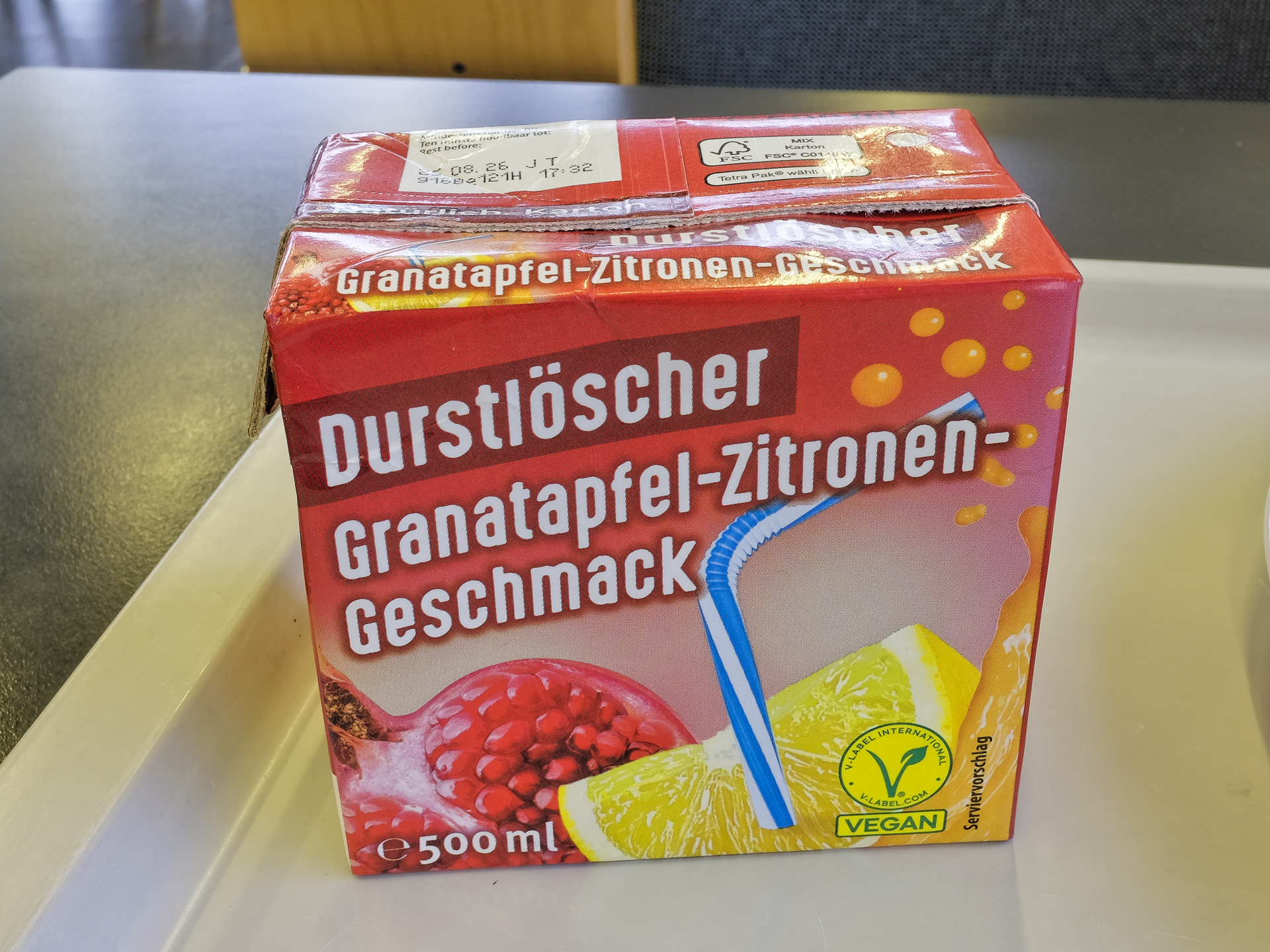 Zum Essen hatte ich einen Durstlöscher Granatapfel-Zitronen Geschmack (0,5 l für 1,50 €).