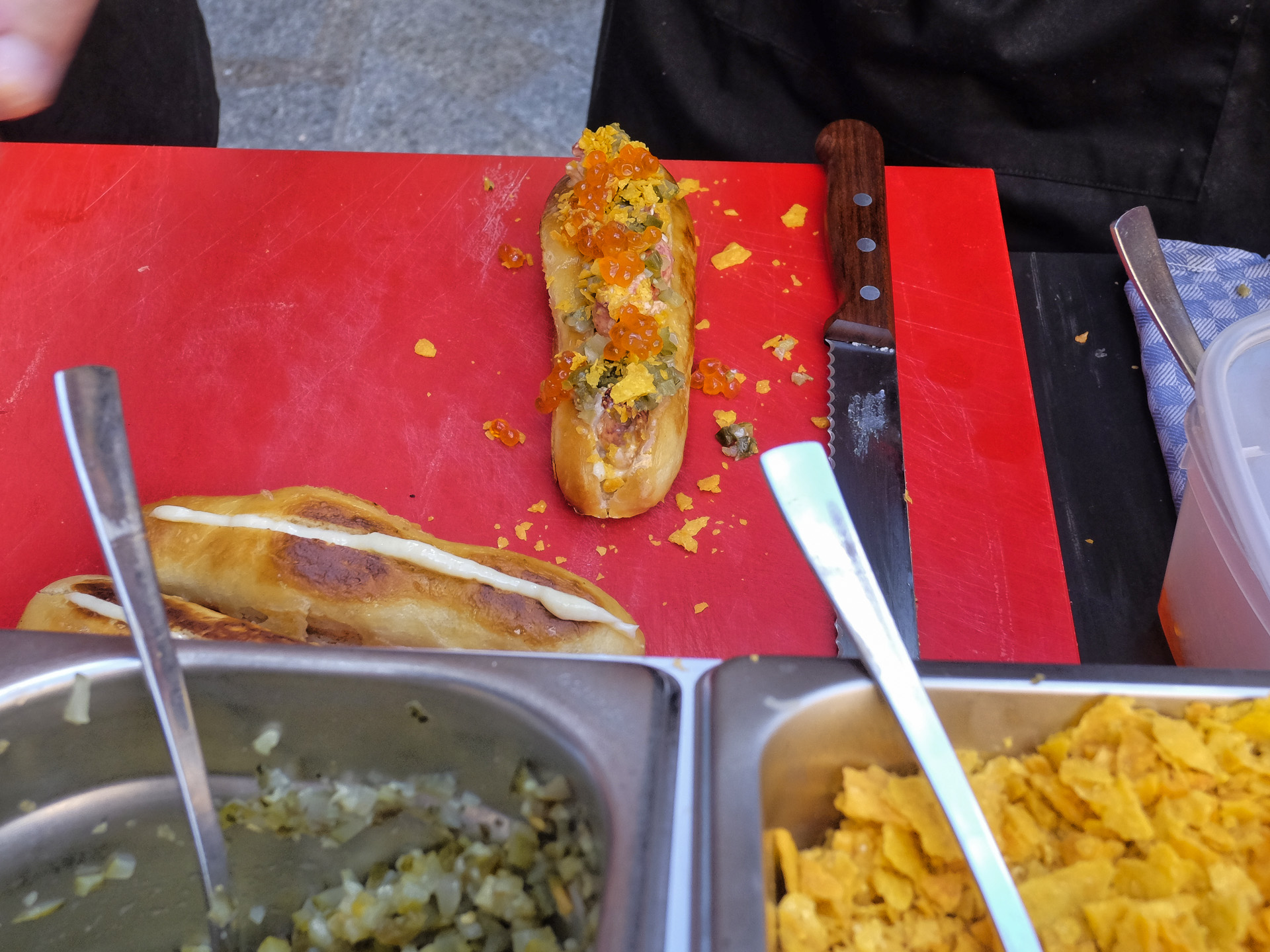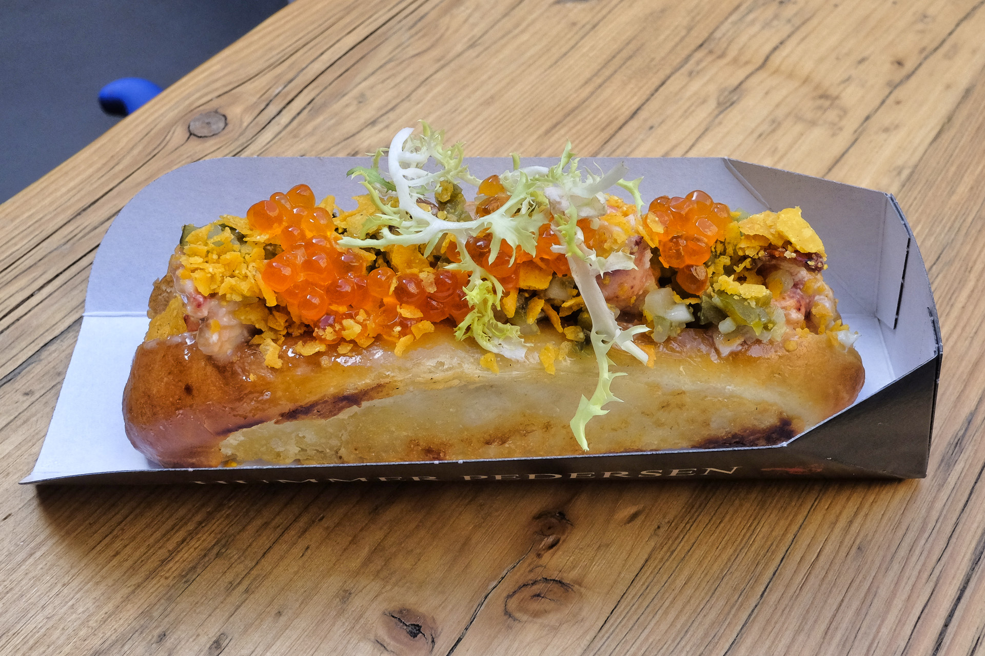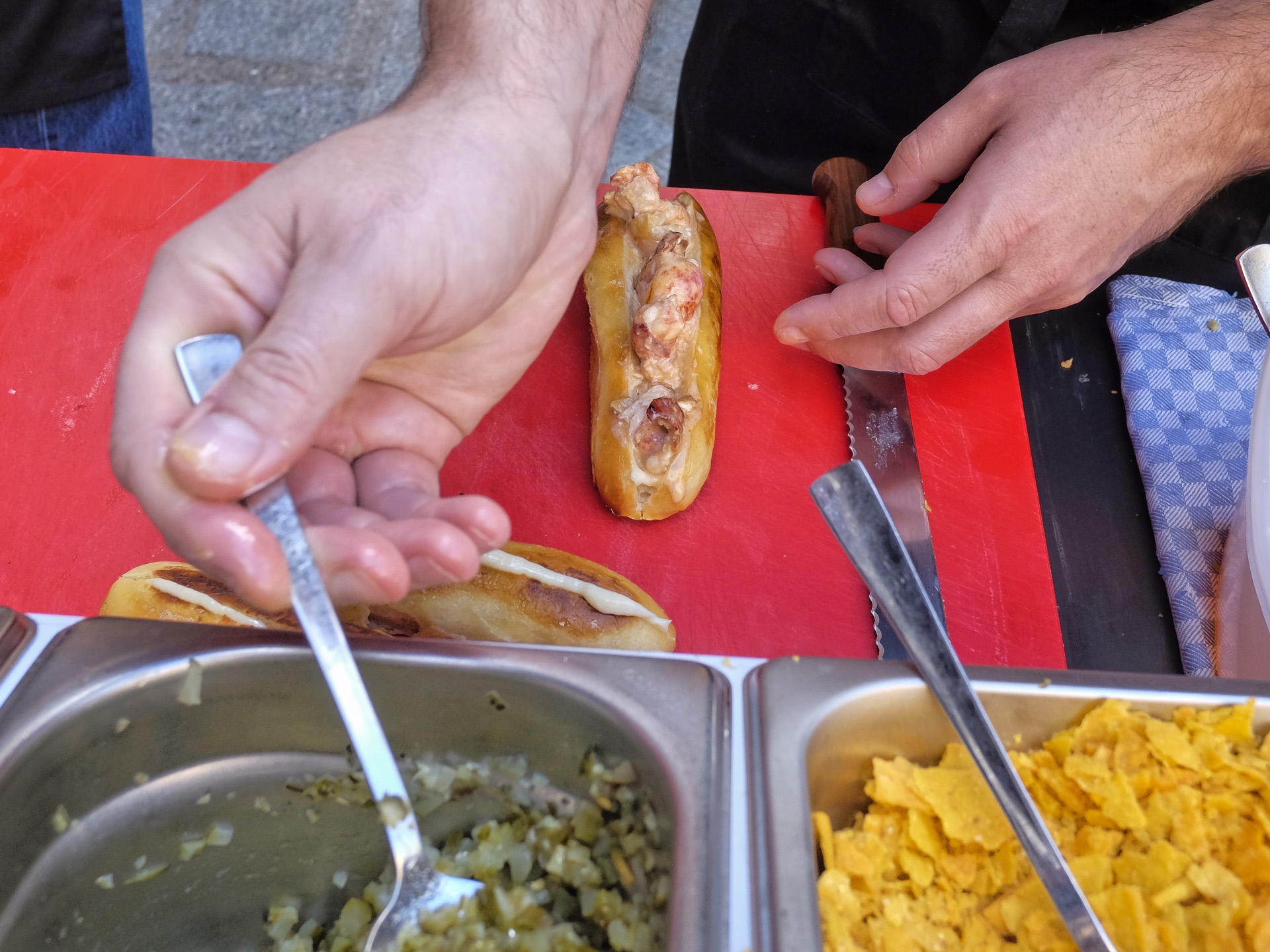 Ein "Hot Dog" für 25 €, das machte mich neugierig. Der Hummer war zart, saftig und hatte ein feines Aroma, das hatte ich in dieser Qualität nicht erwartet. Die Brioche war zart und buttrig, dazu gab es noch etwas Gewürzgurken Jalapeno Salat mit dezenter Schärfe, Lachs Kaviar und Nachobrösel (Röstzwiebeln hätten dazu auch nicht gepasst). Eine positive Überraschung, sehr lecker, Klasse.