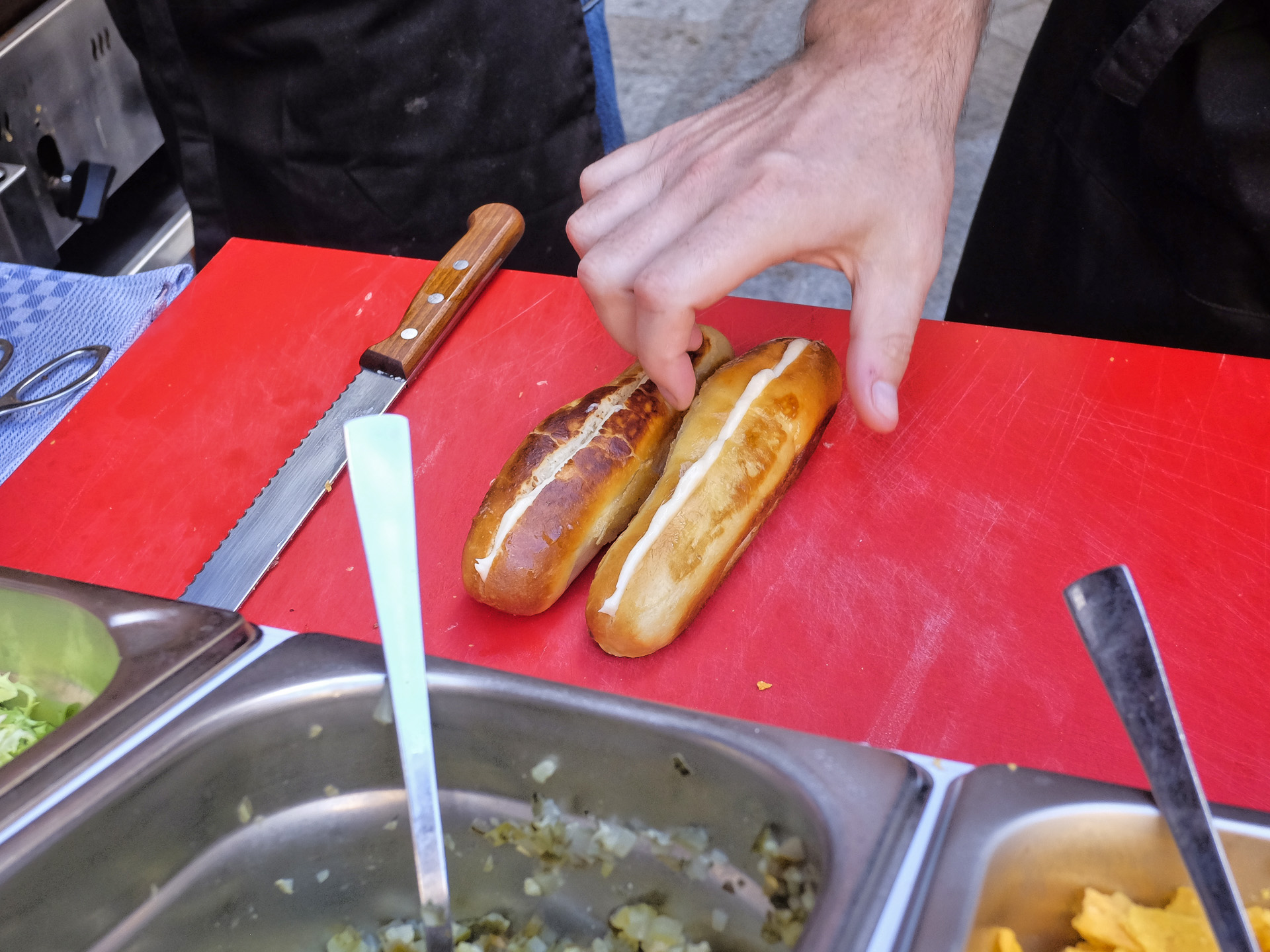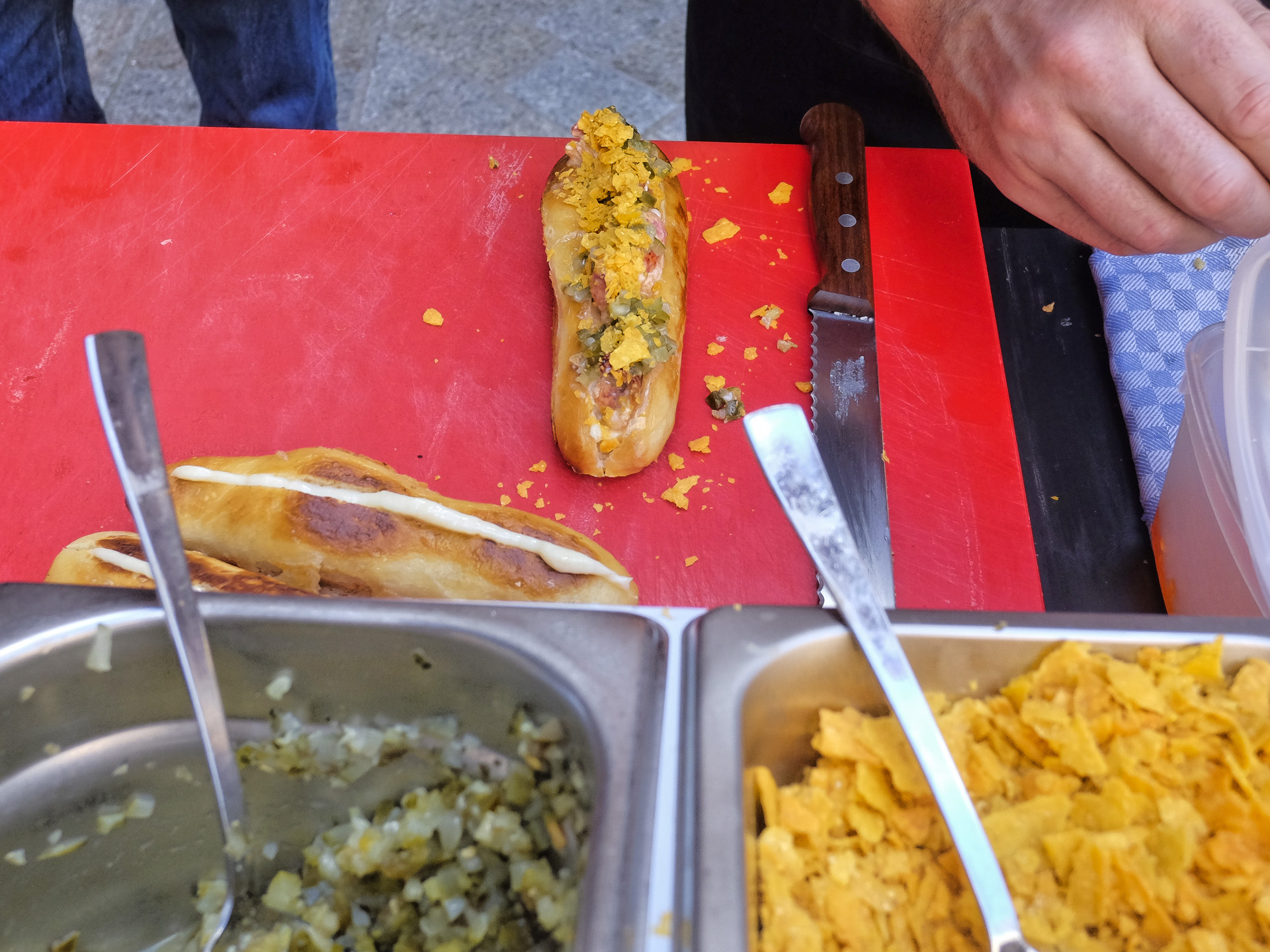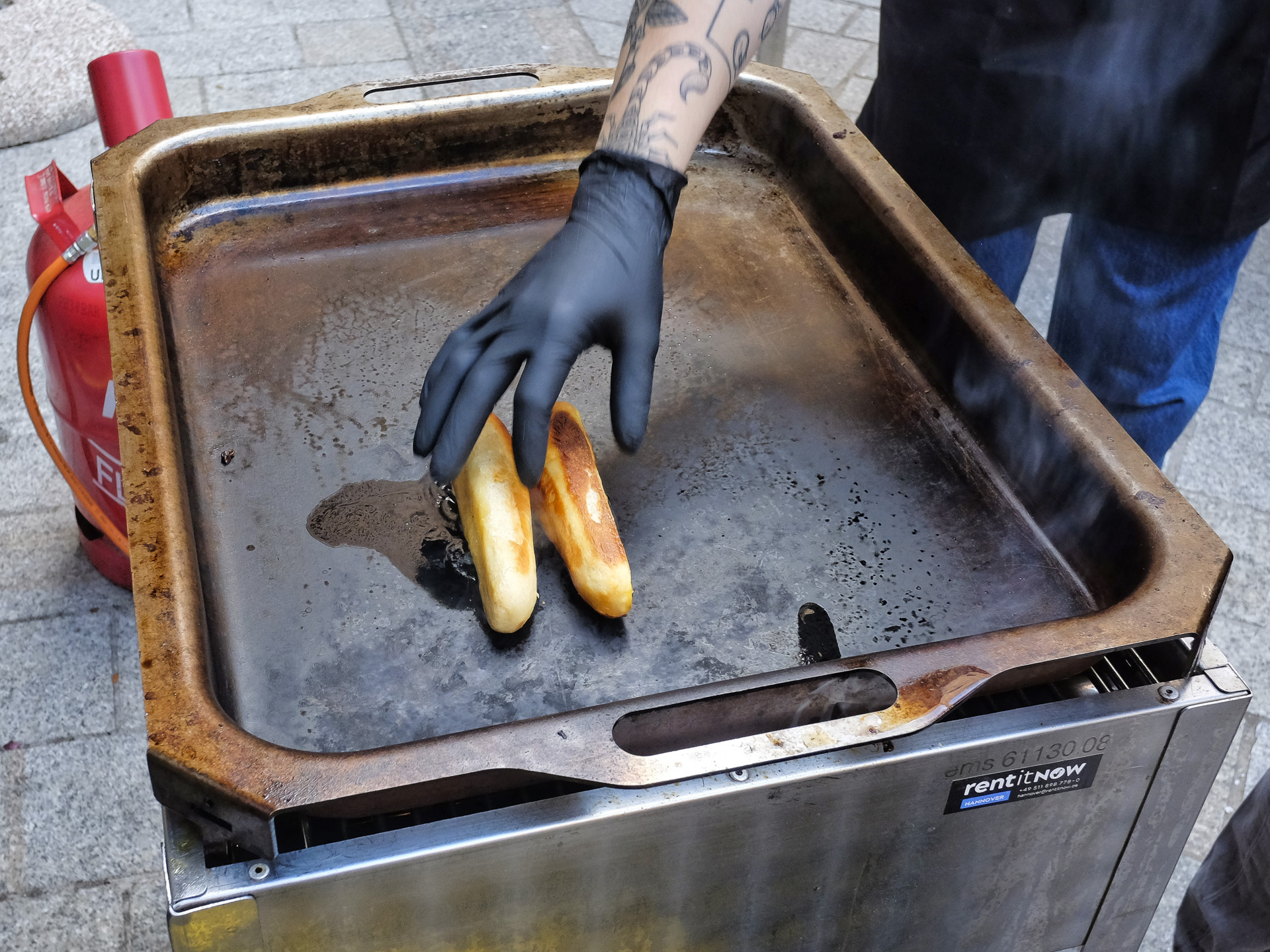 Ein "Hot Dog" für 25 €, das machte mich neugierig. Der Hummer war zart, saftig und hatte ein feines Aroma, das hatte ich in dieser Qualität nicht erwartet. Die Brioche war zart und buttrig, dazu gab es noch etwas Gewürzgurken Jalapeno Salat mit dezenter Schärfe, Lachs Kaviar und Nachobrösel (Röstzwiebeln hätten dazu auch nicht gepasst). Eine positive Überraschung, sehr lecker, Klasse.