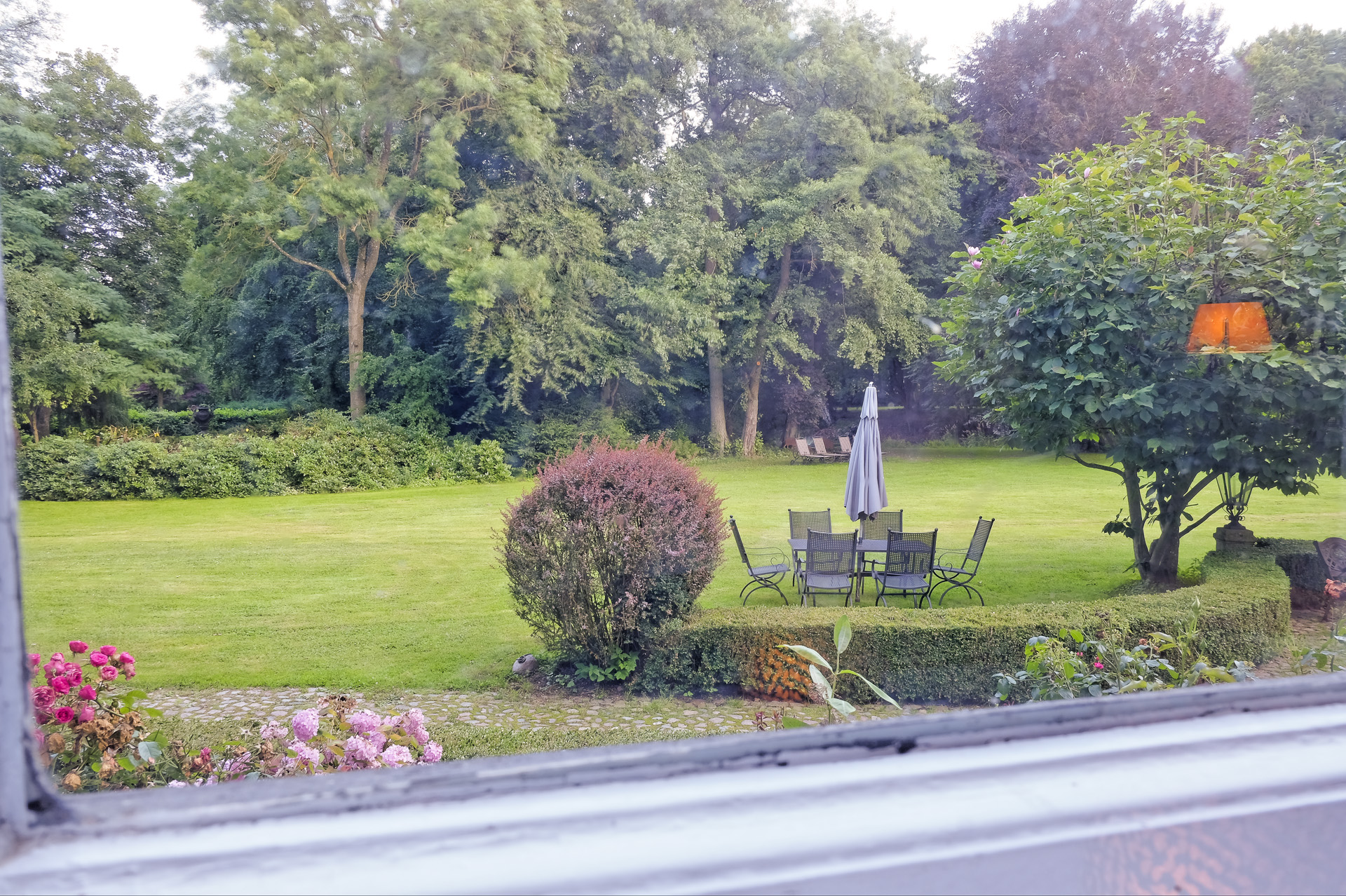 Ein Blick von unserem Tisch in den Garten.