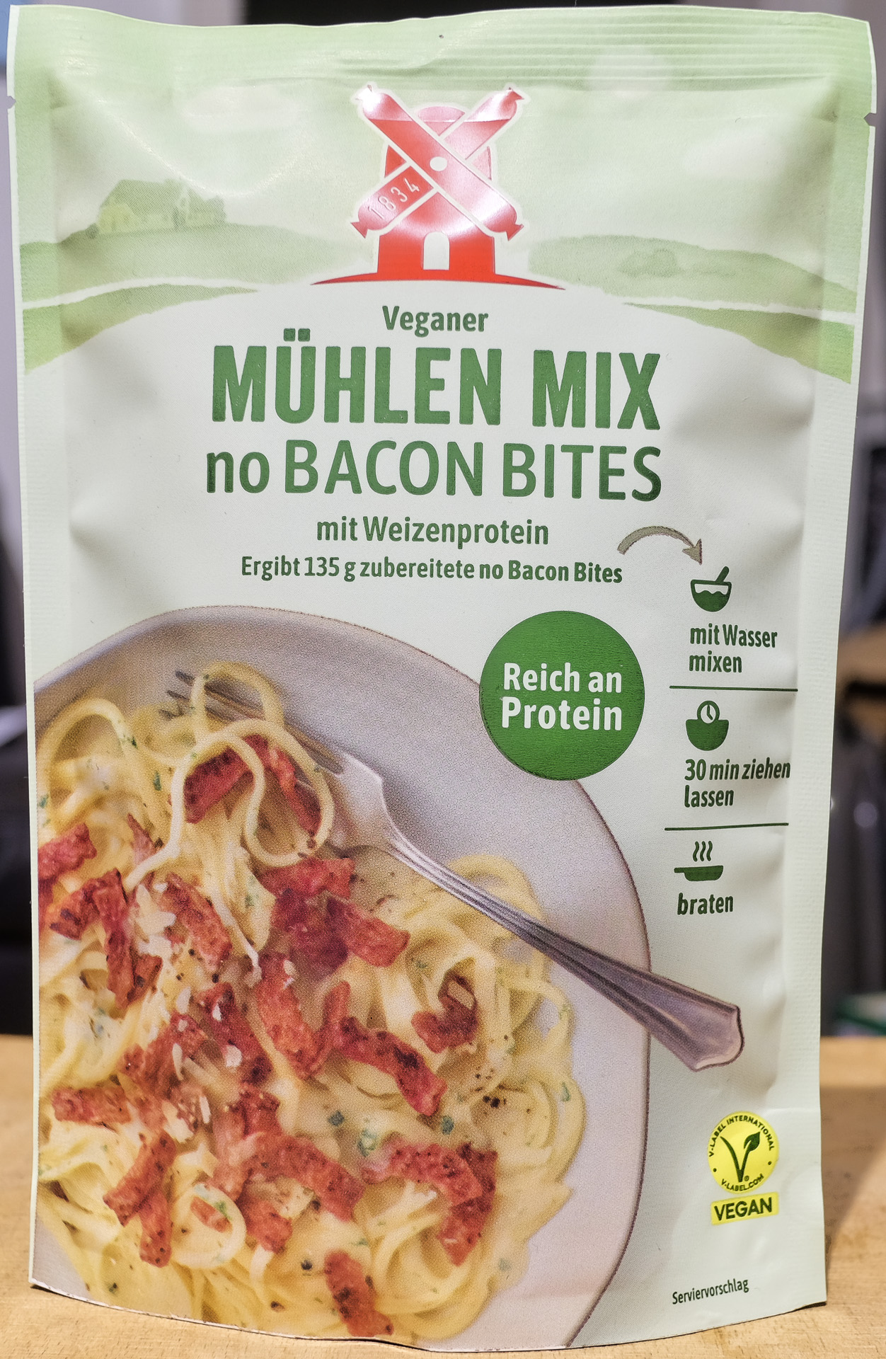Veganen Mühlen Mix no Bacon Bites sind zudem reich an Protein! (Zitat Rügenwalder Mühle)